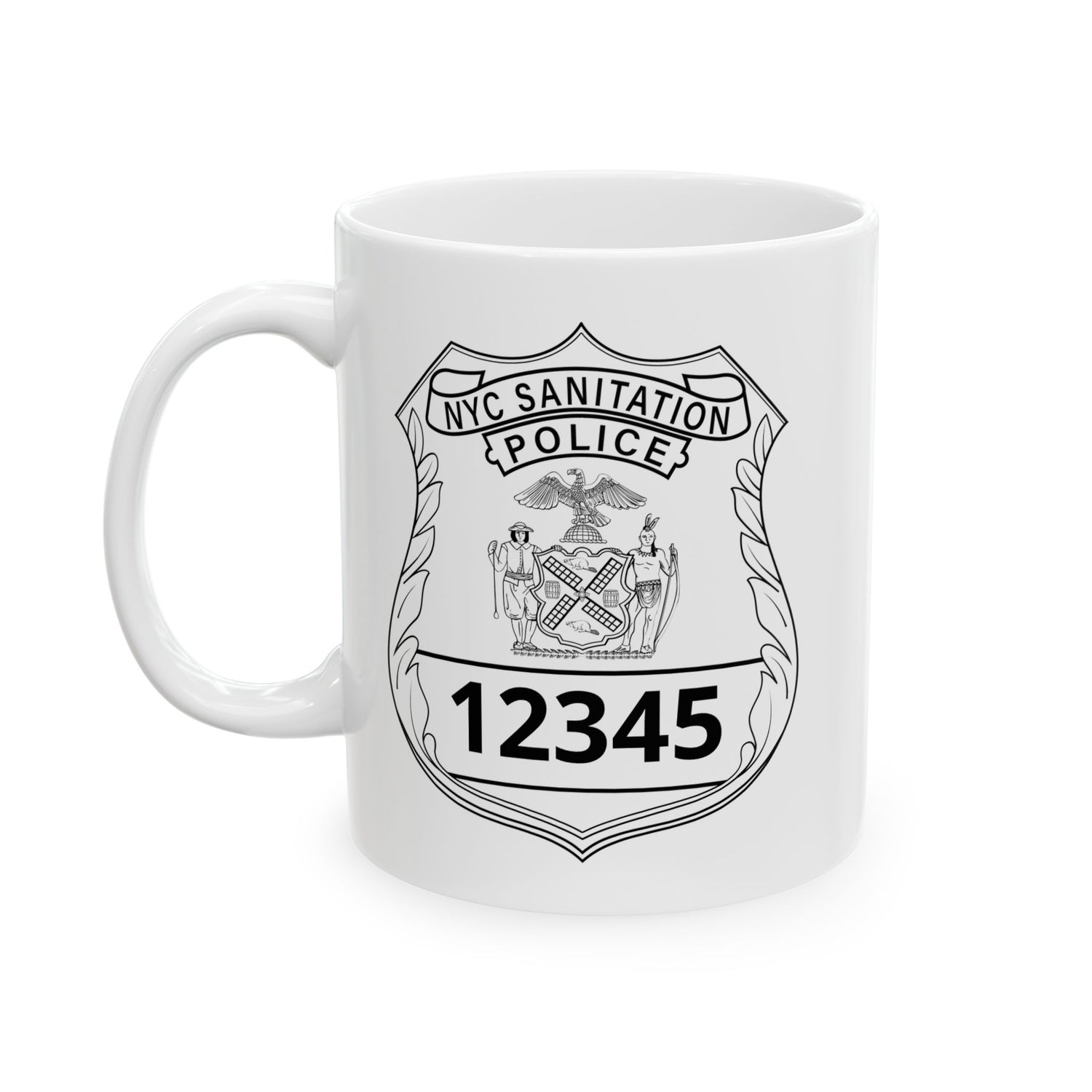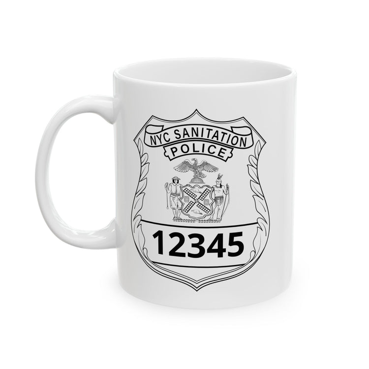 This glossy ceramic mug honors NYC sanitation Police with a personalized badge-style design. When you lift it, you feel the steady rhythm of early morning routes and the quiet pride that comes with a job well done. Bold badge number and name sit crisp against the white ceramic, like identification on a uniform. It’s the kind of mug that fits into a locker, a break-room table, or a kitchen shelf — a small daily reminder of duty, grit, and community. Hand it to someone who sweeps sidewalks before sunrise, who knows the city by its smell and sound, and watch them fold a private smile into the first sip. Whether it’s for a post-shift coffee or a slow weekend cup, the design speaks in straightforward, respectful tones that resonate with those who wear the title and those who respect it.