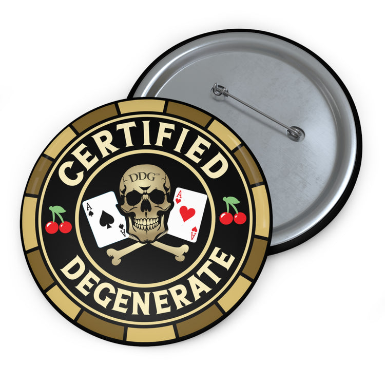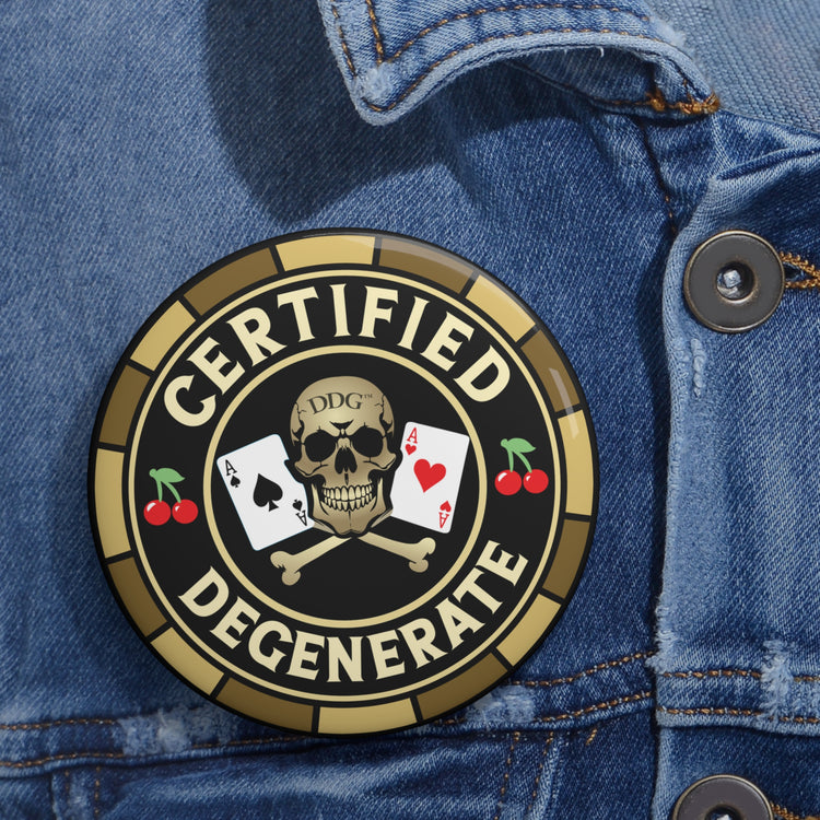 Wear your mischief with a grin. This metal pin button carries a cheeky “Certified Degenerate” badge that reads like an inside joke for tabletop rogues, high-stakes streamers, and late-night card sharps. It’s small but loud — a glossy, colorful patch of attitude that snaps onto jackets, dice bags, hoodies, or convention lanyards. The steel safety-pin back keeps it confident through crowded rooms and long sessions. Let it spark a laugh, start a conversation, or silently declare allegiance to chaotic rolls and risky plays at game night or the next tournament.