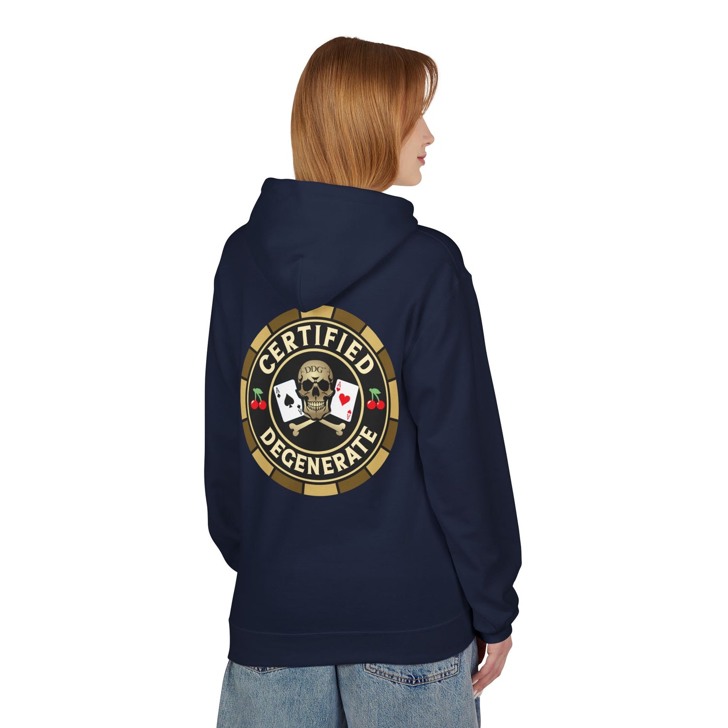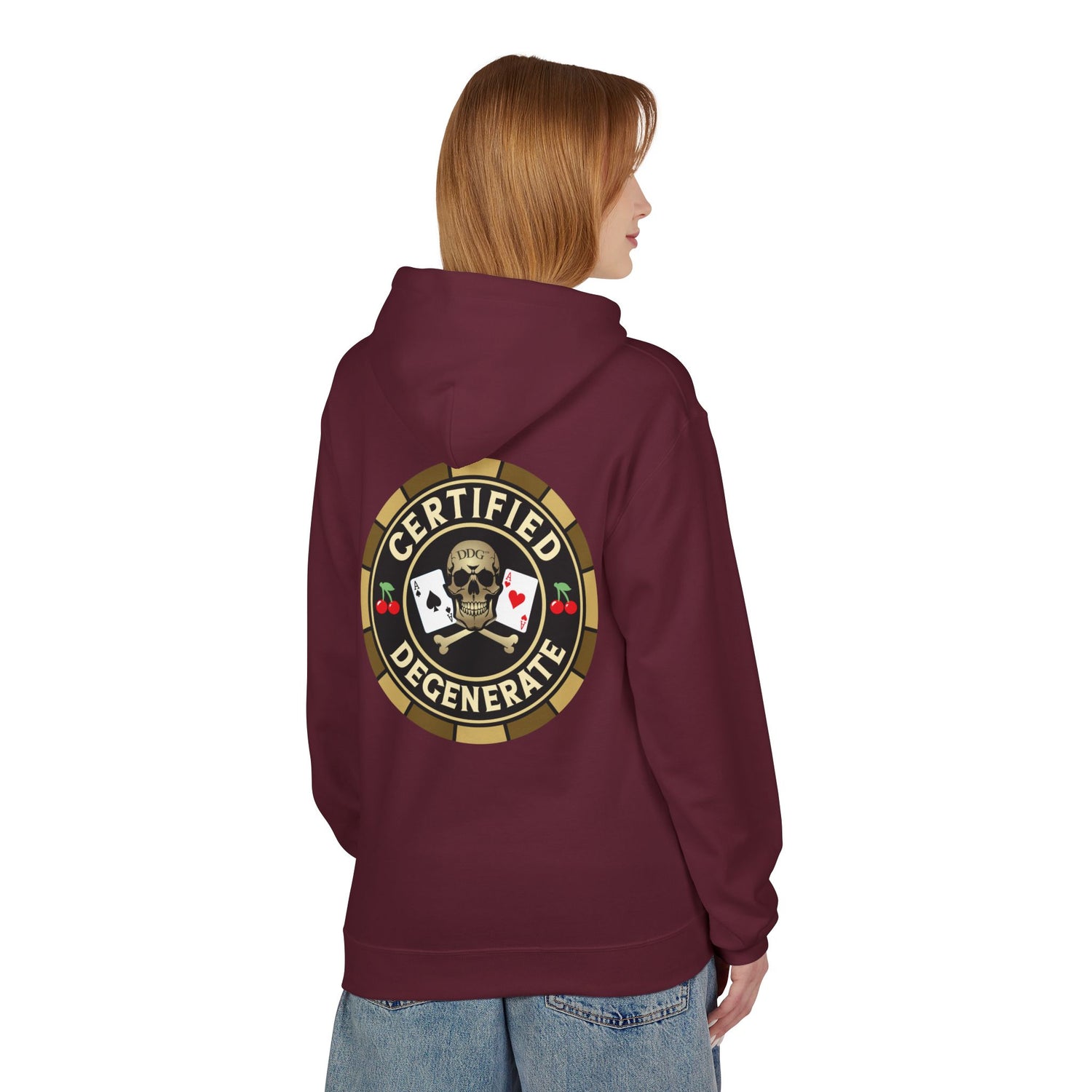 Certified Degenerate Hoodie - Poker Skull Chip Graphic