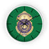 A silent, stylish wall clock that brings a calm, steady rhythm to any room. The printed plexiglass face shows a bold emblem against a rich green background, framed in your choice of natural wood, black, or white to match your decor. Built-in hanging hardware and a quiet mechanism make it simple to mount in an office, study, or living space where understated authority and vintage charm belong. The vibrant printing stays sharp over time, while the lightweight wooden frame and plexiglass face keep it durable and easy to place where you need it most.